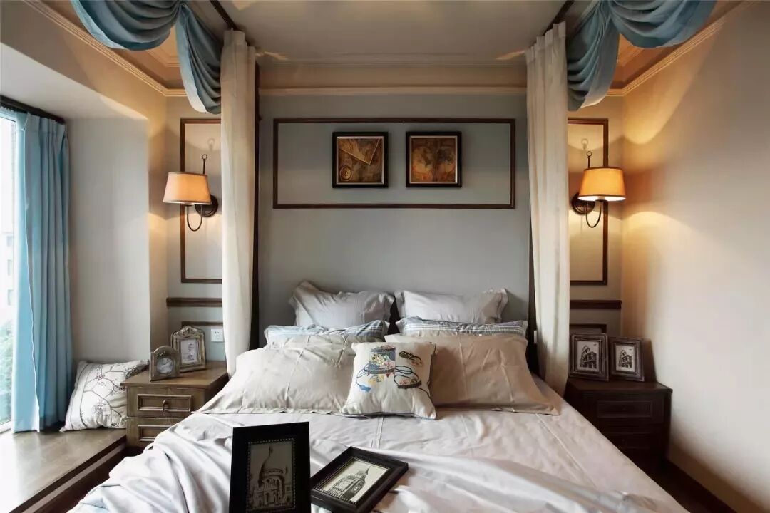 卧室最注重的就是的采光和通风,在该案例中,设计师为卧室的窗户做了柔性的处理,落地窗配上公主床,如童话故事般梦幻。