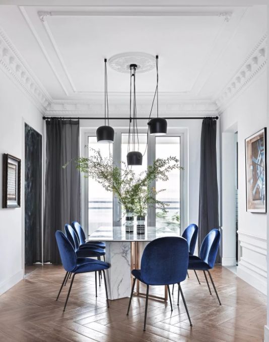餐厅的设计也是别出心栽,其核心的设计理念是:让每一顿饭都像烛光晚餐。为了让每一次就餐都充满浪漫情调,餐厅潜入式的灯光对窗帘进行反射和透亮,以此来柔滑空间的硬朗性!