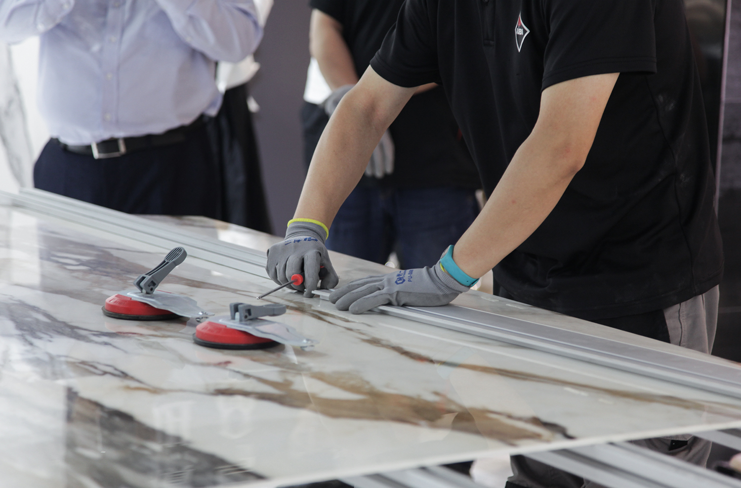 为了更好地让大家深刻地了解EK岩板的加工过程,RUBI工作人员在每一个加工步骤都邀请了CK中国的精英们参与其中,并就大家在岩板加工时所遇到的技术问题进行了解答。