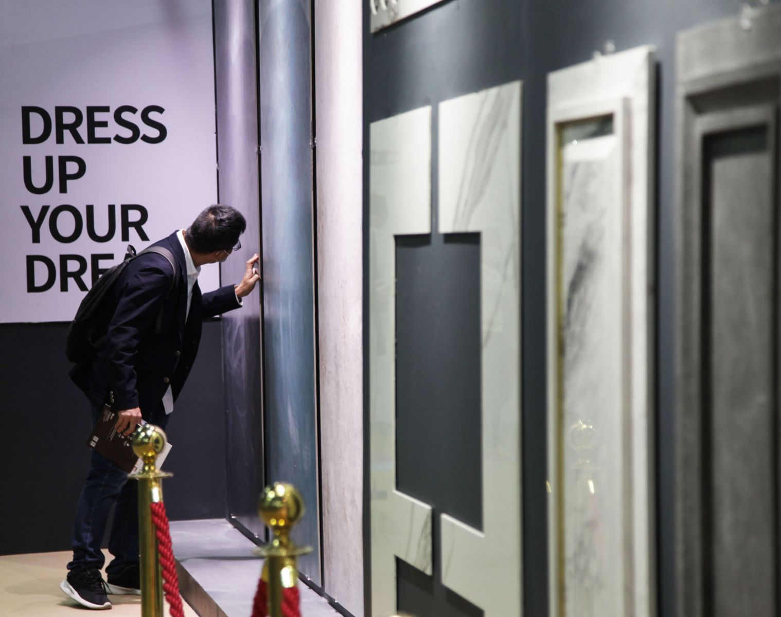 岩板艺术长廊的展现形式,不仅能更直观性近距离地让大家感受到意大利安纳捷岩板的产品魅力。而且每一款岩板都有一个独立的背景文化故事,这里有以莫奈笔下对光与影捕捉为设计蓝本的莫奈系列;有以歌唱着时序涛声的史书的青铜元素为设计灵感的玛诺提系列......